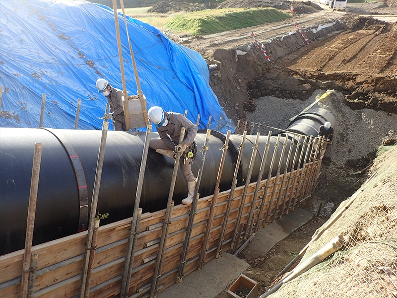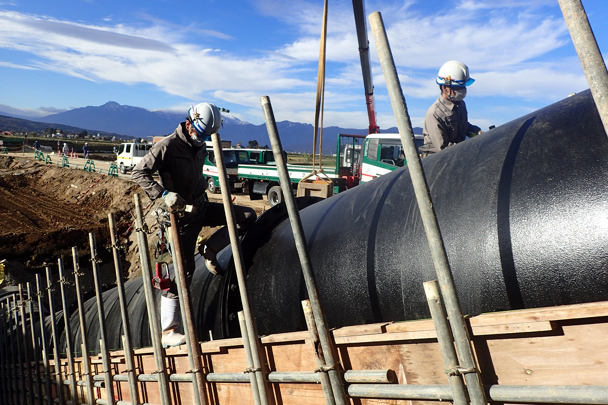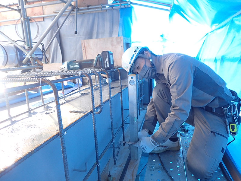 樋門・樋管、現場打ボックスカルバート、コンクリート水路などの躯体(くたい)の枠を作る仕事です。